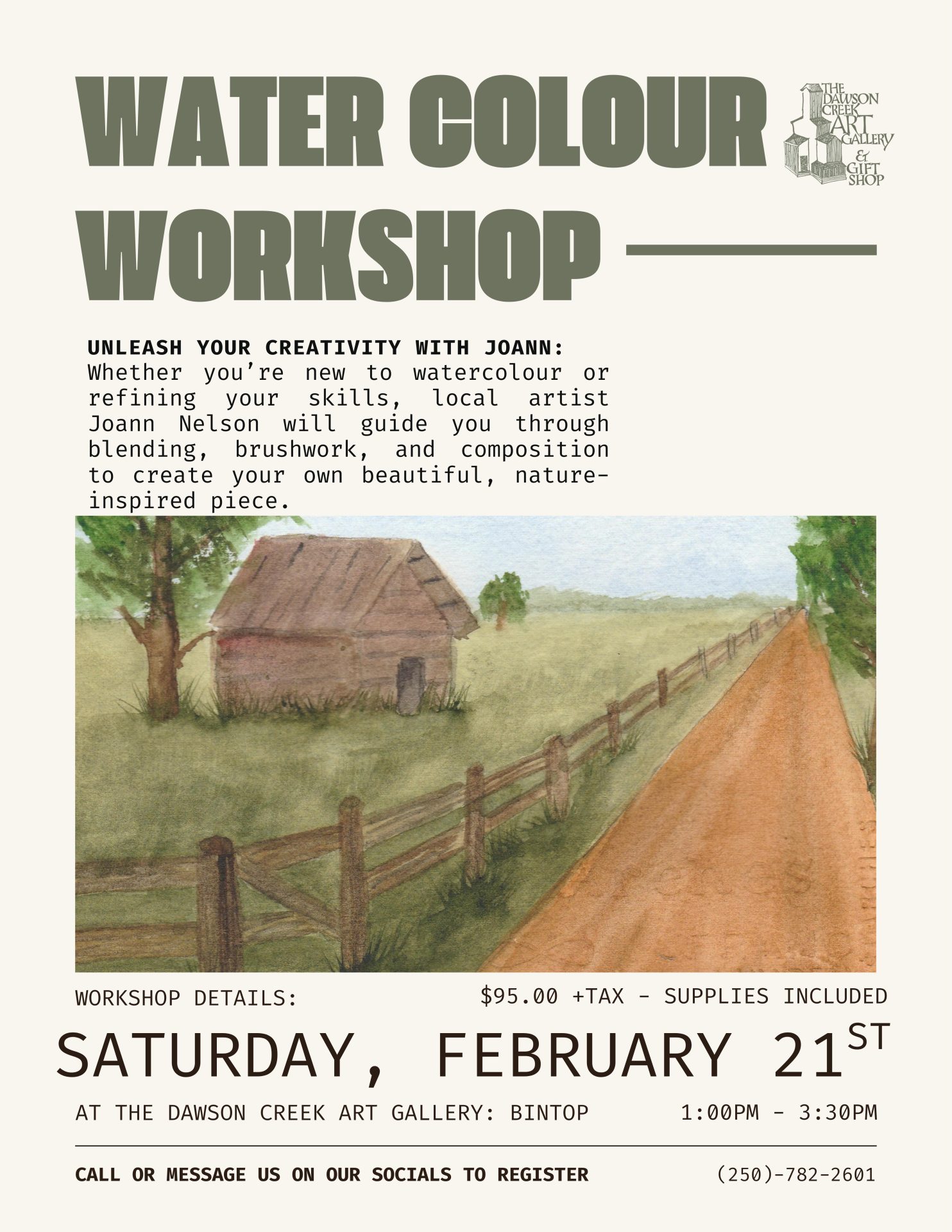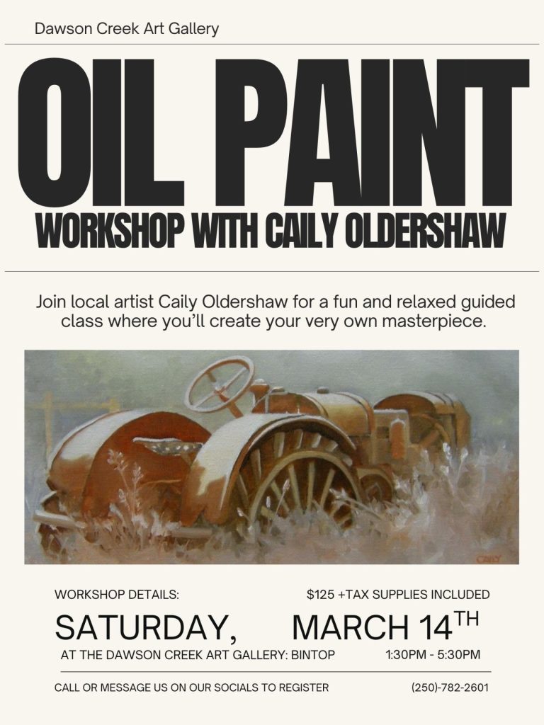 At the Dawson Creek Art Gallery, we strive to offer workshops and courses across a wide range of artistic mediums. Some of our most popular workshops include hand-build pottery, oil painting, acrylics, watercolour, beading, block printing, and more. Pricing varies depending on the medium and the length of each class.