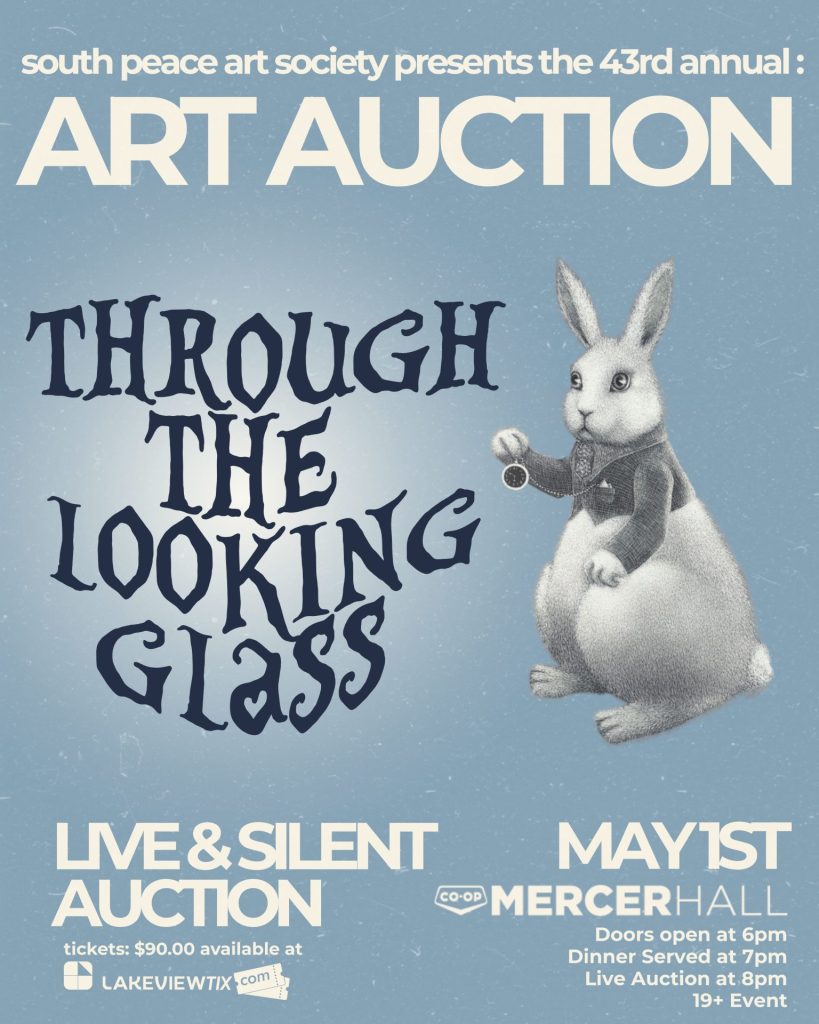 The South Peace Art Society presents the 43rd Annual Art Auction—Through The Looking Glass, an evening where art is whimsically beautiful, nonsense reigns, and curiosity comes alive. Adventure through the looking glass to enter a world where things grow curiouser and curiouser. Join us for a night filled with live music, delicious food, and of course stunning artwork. Enjoy the delightful madness of artistic creativity as you bid on incredible pieces by talented local artists, with all proceeds supporting programming at the Dawson Creek Art Gallery. Celebrate art, imagination, and community at this unforgettable evening where dreams feel possible and nothing is quite as it seems. On May 1st, Guests will enjoy a full evening experience—doors open at 6:00pm, dinner is served at 7:00pm, and the live auction will begin at 8:00pm. Tickets are now available. Individual tickets are $90.00 each, and reserved tables of eight are $720.00. Tickets may be purchased online at www.lakeviewtix.com, by phone at 250-782-7443, or in person at the Lake View Tix Box Office at the Ovintiv Events Centre, as well as at the outlet located in Software Emporium Inc.
